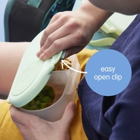 An easy open/close clip is large enough for little hands and fingers and the seals are removable for easy, hygienic cleaning. Made from PP and silicone.