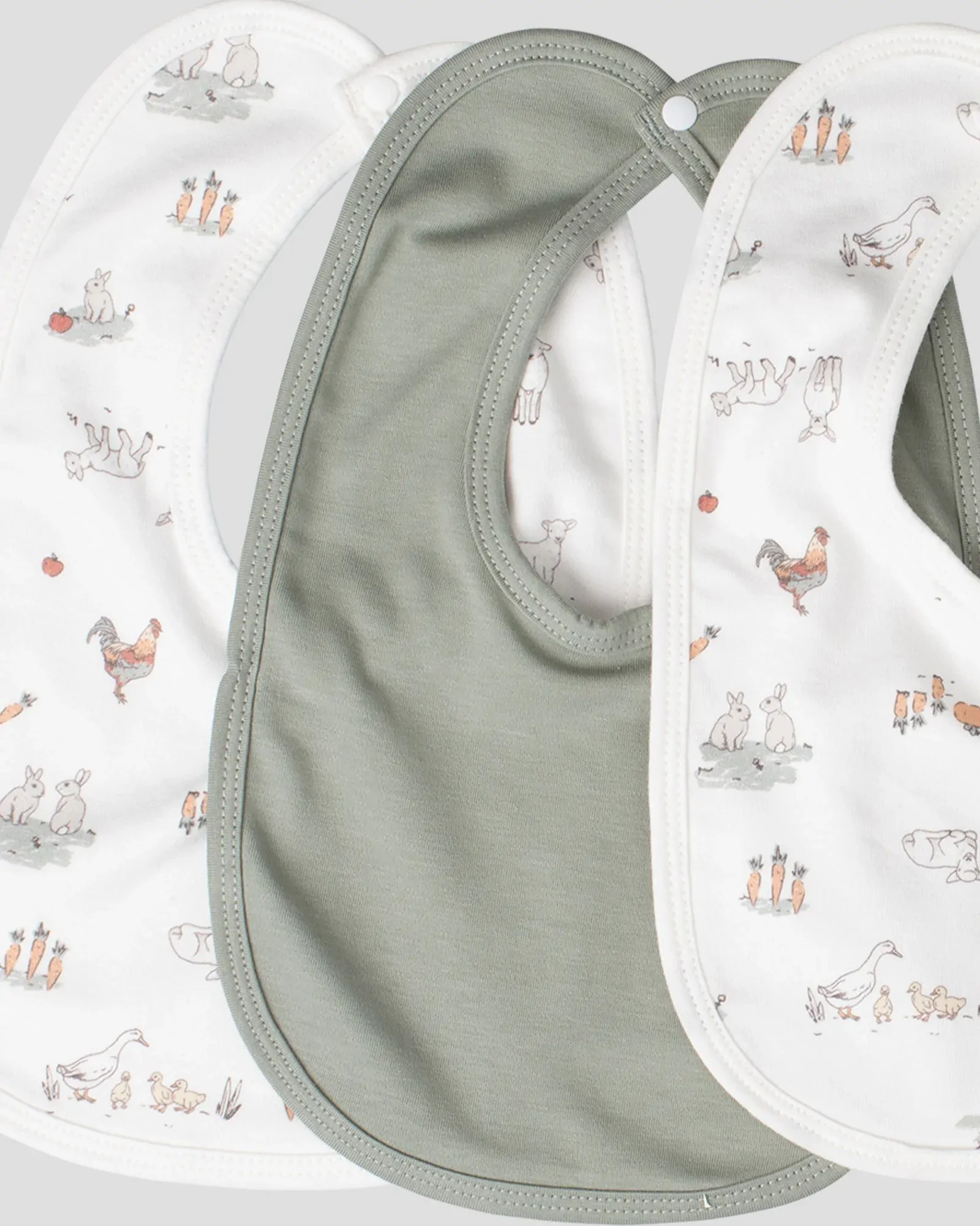 Designed with a practical snap closure for a comfortable, adjustable fit, these bibs stay securely in place through wriggles, feeds, and first self-feeding adventures. The coordinating set of five features sweet Harvest Bunny designs and earthy tones, so you’ll always have a clean bib on hand.