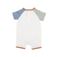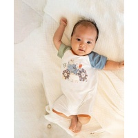 In StockThis charming farmyard romper brings a touch of countryside whimsy to your little one's everyday wardrobe. Made from 100% soft cotton for comfort and breathability, it features a sweet watercolour-style farm print with a tractor, sheep, and ducklings on the front. The raglan sleeves in contrasting colours add a playful twist, while the contrast binding ties it all together. Designed with practicality in mind, it includes a back neck button opening and press studs at the crotch for easy changes.