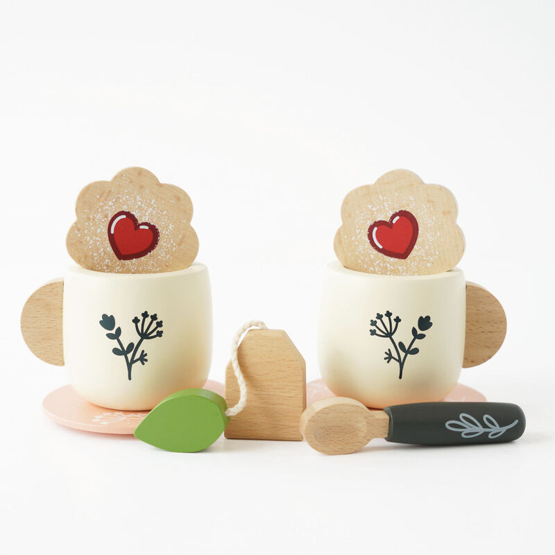 In StockThis 12-piece set includes everything your little one needs to host their own delightful tea party. It features beautifully crafted wooden cups and saucers, a charming teapot, a tea bag, a dainty milk jug, and even sugar-coated biscuits for an authentic tea-time experience. The serving tray is adorned with charming floral details, adding a sense of style to the convenience and portability of the set. All wooden parts are made of FSCTM-certified wood.