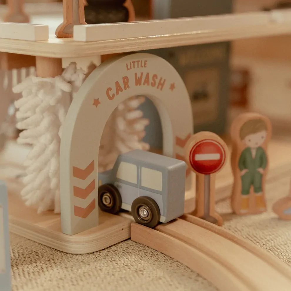 Pre-order - Released 5 December 2025Park, refuel, and race! This wooden toy garage is the perfect addition to your play room. The garage features a ground floor with a car wash, two parking decks, and an electric charging station, plus a helicopter platform on top. Includes wooden accessories such as traffic signs, stacked tires, and a bucket. Also comes with three vehicles and a helicopter. Drive up, park your car, or fly to your destination. Endless fun guaranteed!