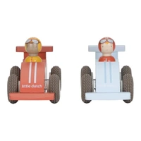 In StockThis set of pullback race cars provides endless playtime fun. Pull the cars back, release them, and watch them speed off quickly. Each car has a cheerful peg doll driver that you can swap, making role play even more enjoyable. Thanks to the sturdy wooden construction and rubber wheels, the cars drive smoothly across the floor. An exciting addition to the toy collection of little racing enthusiasts. On to the finish line!