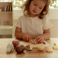 Velcro “Cutting” Action: Each fruit splits in half with the wooden knife and easily reattaches with Velcro, providing a safe, hands-on way to practice fine motor skills and pretend cooking.