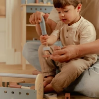 In StockEverything a little carpenter needs! This wooden toolbox includes a hammer, screwdriver, and wrench—perfect for building the most wonderful creations. But that ’s not all – the sides of the box can also be used as a pounding bench! This way, little ones can hammer and screw while playfully developing their motor skills and creativity. Ready to get started?