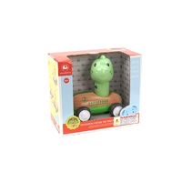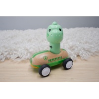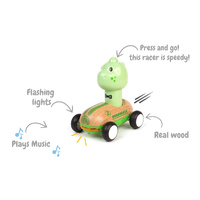 In StockIntroducing the Wooden Press Go Racer Dinosaur from Wanborns, a dino mite companion for your little racer. This charming, cute light green dinosaur character sits snugly in his speedy race car, ready to zoom into fun. Simply press down his head and watch him whoosh across the floor in a blur of excitement. But that is not all. As he speeds, he plays delightful, toe tapping melodies and lights up with glowing headlights to make the race even more magical.