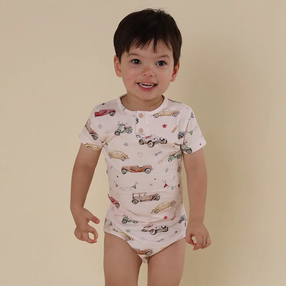 Snuggle Hunny - Vintage Cars Short Sleeve Organic Bodysuit [Size: 00]