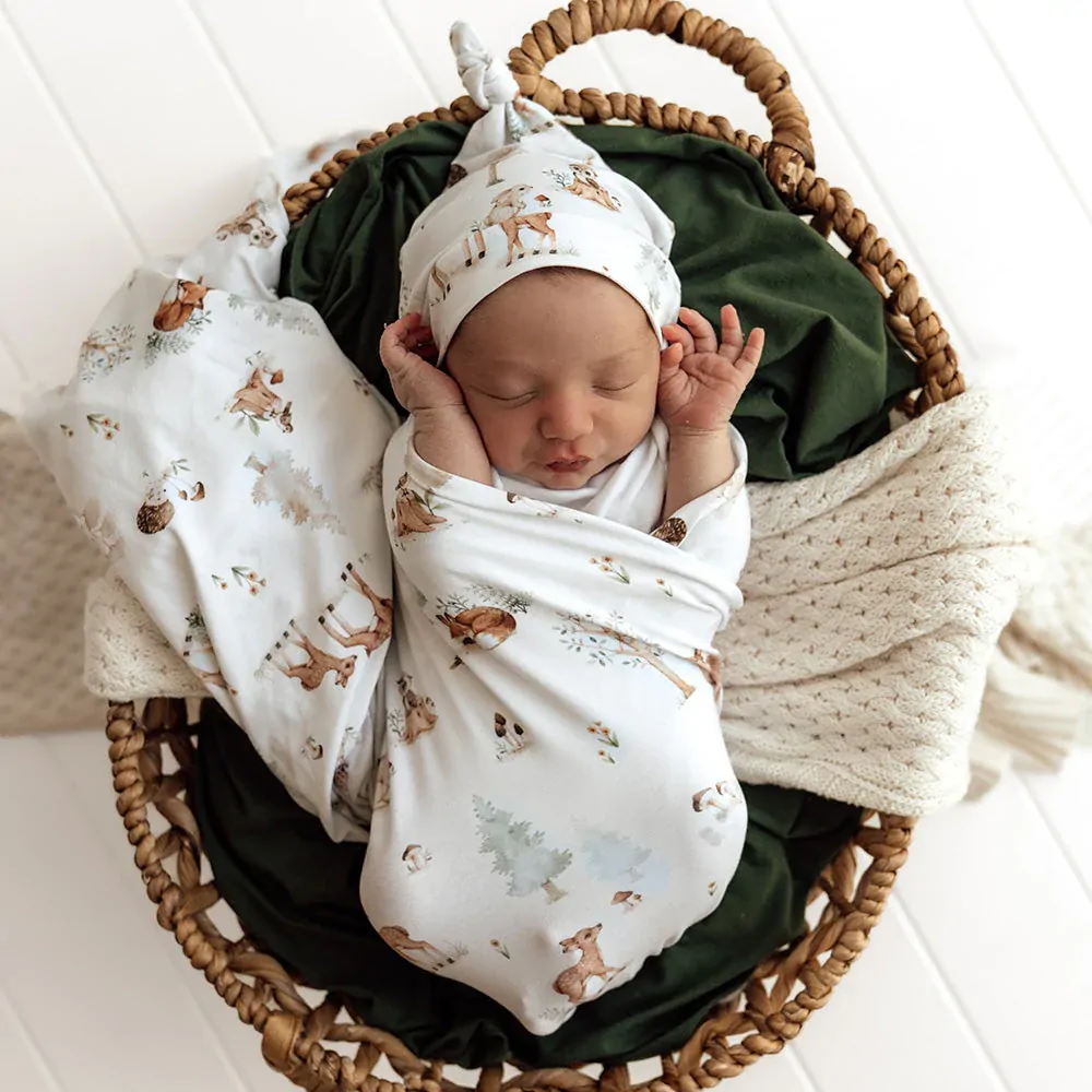 Snuggle Hunny - Woodland Tales Organic Jersey Wrap & Beanie Set