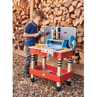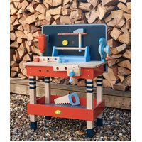 This tool bench is perfect for any budding carpenter and is made of 19 pieces. The back panel holds a removable drill, and a circular saw as well as a shelf to hang the hammer, screwdriver and spanner. On the bench itself, there is a handy ruler with a sliding right-handed corner and working vice. The toolbox can be filled with the nuts and bolts and taken out of the bench for extended play.
