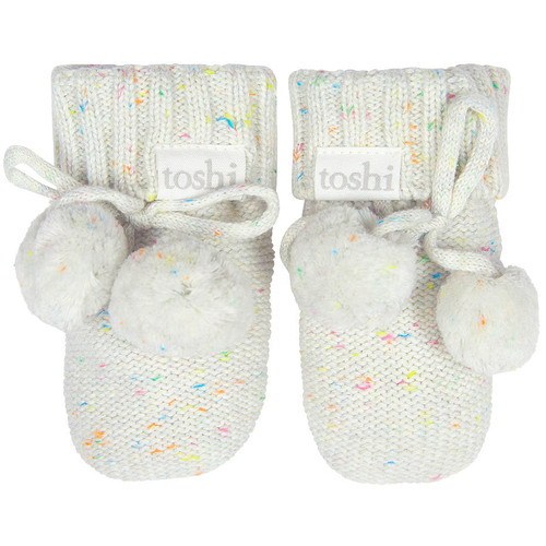 The much loved Toshi Organic Baby Booties Marley are made from the finest quality certified 100% organic cotton yarn. Organic certification ensures the booties are gentle on your babies delicate feet, as well as the environment. The beautifully-textured melange yarn brings an element of refinement to this Toshi baby accessory. Carefully crafted with a ribbed knit cuff, Toshi booties stay up while maintaining healthy circulation. Our booties are ankle height and are designed to protect precious tootsies during rest and play. Cute pom poms create a whimsical style and the ties ensure a snug fit. Toshi booties are packaged in a quality box and make an ideal newborn gift.