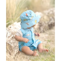 In StockToshi presents Sunhat Ryder, a classic, gender-neutral sunhat for children of all ages. The sunhat has a broad and well-structured brim. The UPF 50+ UV rating indicates maximum sun protection. The head tie with toggle creates adjustable sizing. A chin tie with toggle secures the hat for ease of wear. The security release clasp on the chin tie is designed to enhance wearer safety. The sunhat is fully lined for additional comfort. An original and exclusive Toshi print design is featured.